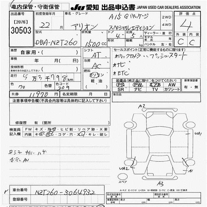 TOYOTA ALLION - лот 30503