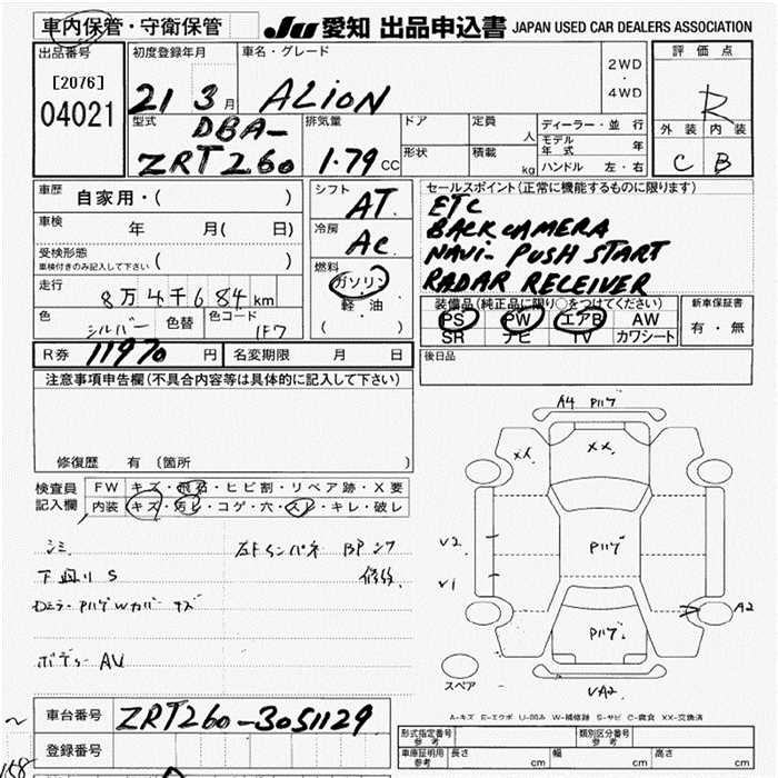 TOYOTA ALLION - лот 4021