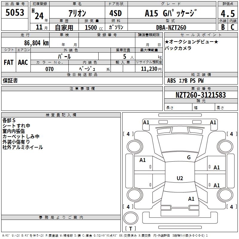 TOYOTA ALLION - лот 5053