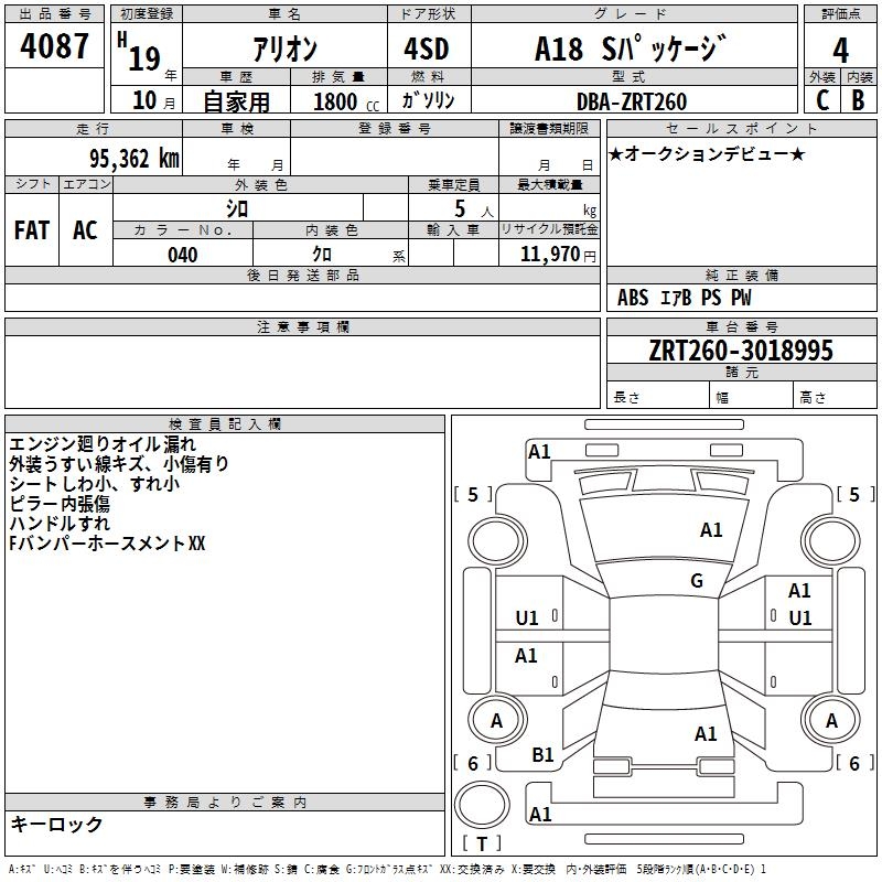 TOYOTA ALLION - лот 4087