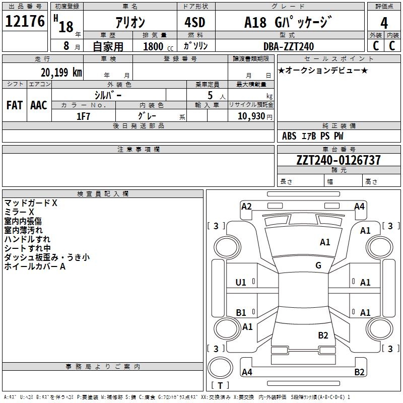 TOYOTA ALLION - лот 12176