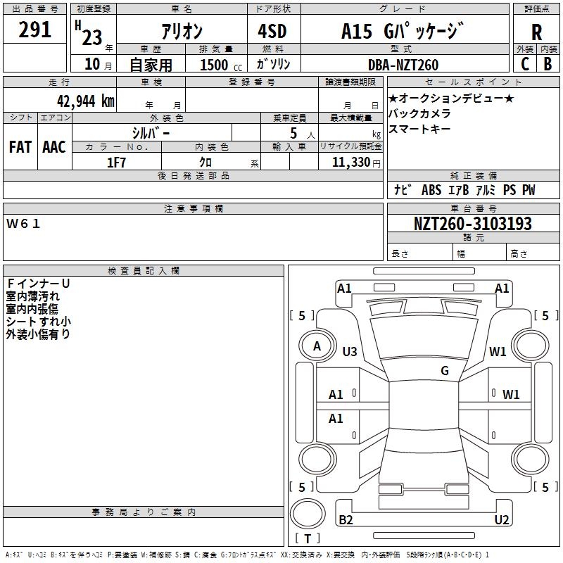 TOYOTA ALLION - лот 291