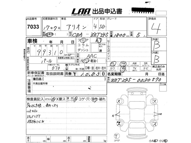 TOYOTA ALLION - лот 7033