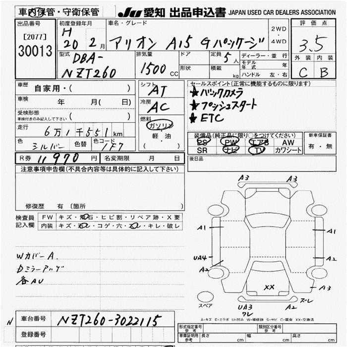 TOYOTA ALLION - лот 30013