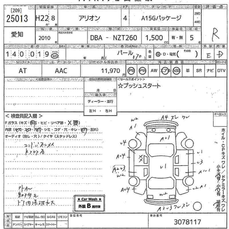 TOYOTA ALLION - лот 25013