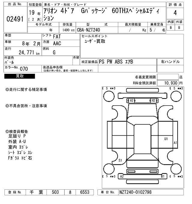 TOYOTA ALLION - лот 2491