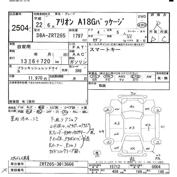 TOYOTA ALLION - лот 2504