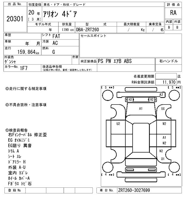 TOYOTA ALLION - лот 20301