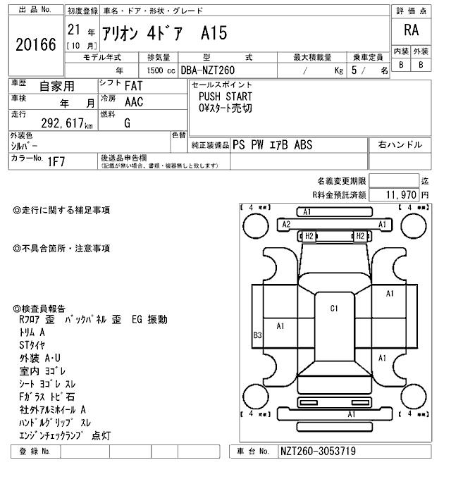 TOYOTA ALLION - лот 20166