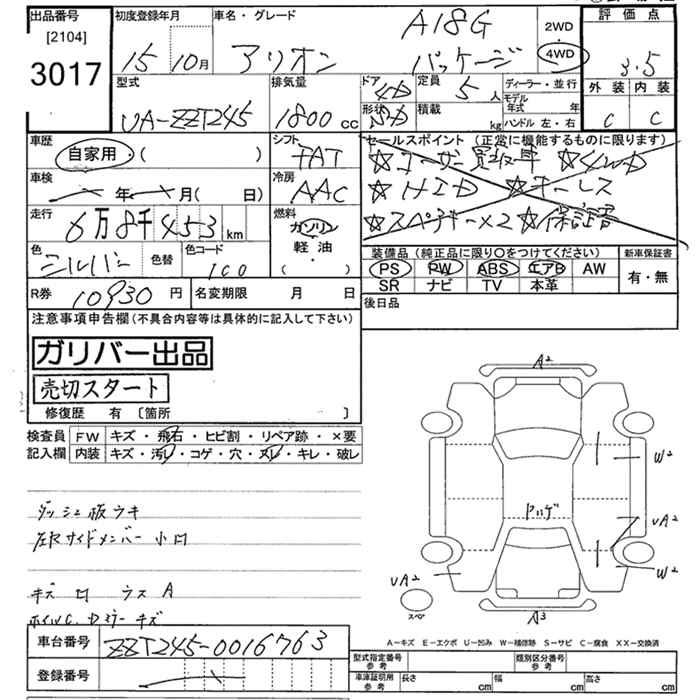 TOYOTA ALLION - лот 3017