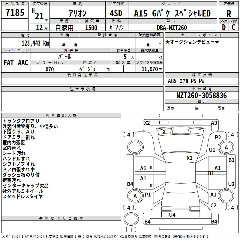 TOYOTA ALLION - лот 7185