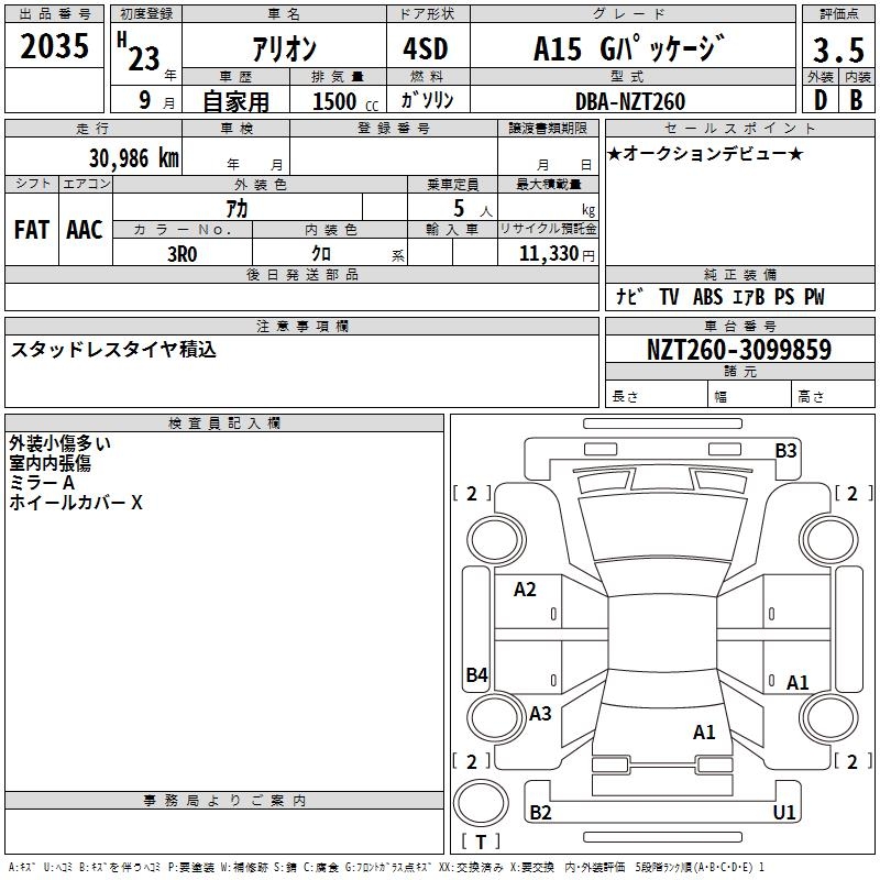 TOYOTA ALLION - лот 2035