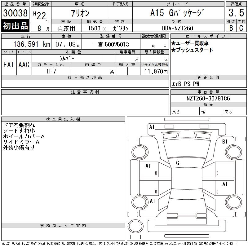 TOYOTA ALLION - лот 30038
