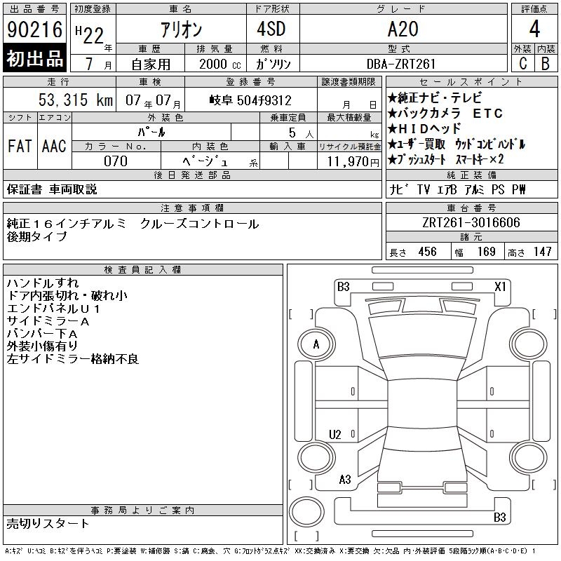 TOYOTA ALLION - лот 90216