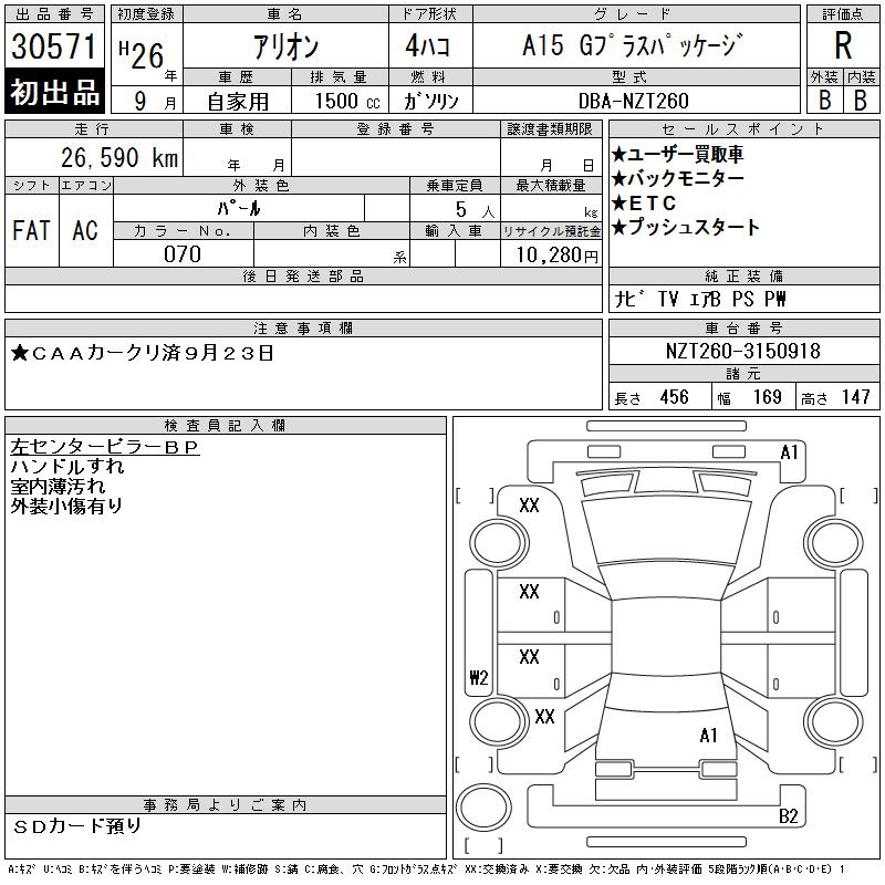 TOYOTA ALLION - лот 30571