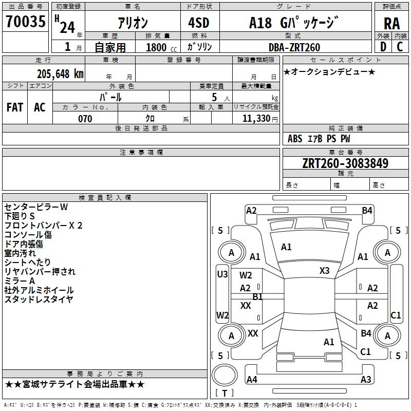 TOYOTA ALLION - лот 70035