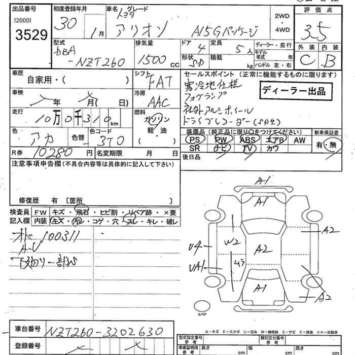 TOYOTA ALLION - лот 3529