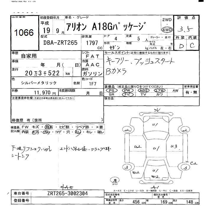 TOYOTA ALLION - лот 1066