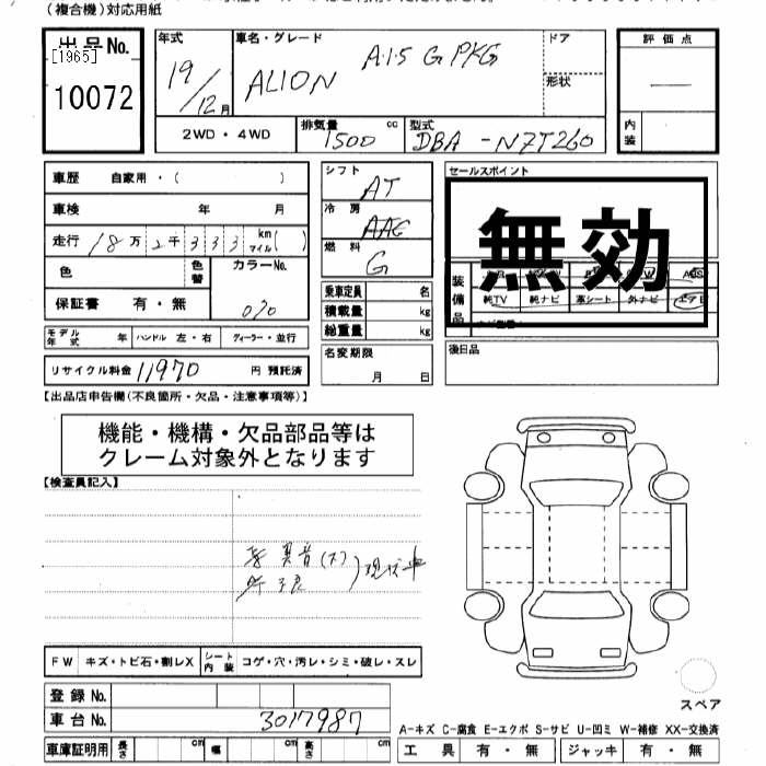 TOYOTA ALLION - лот 10072