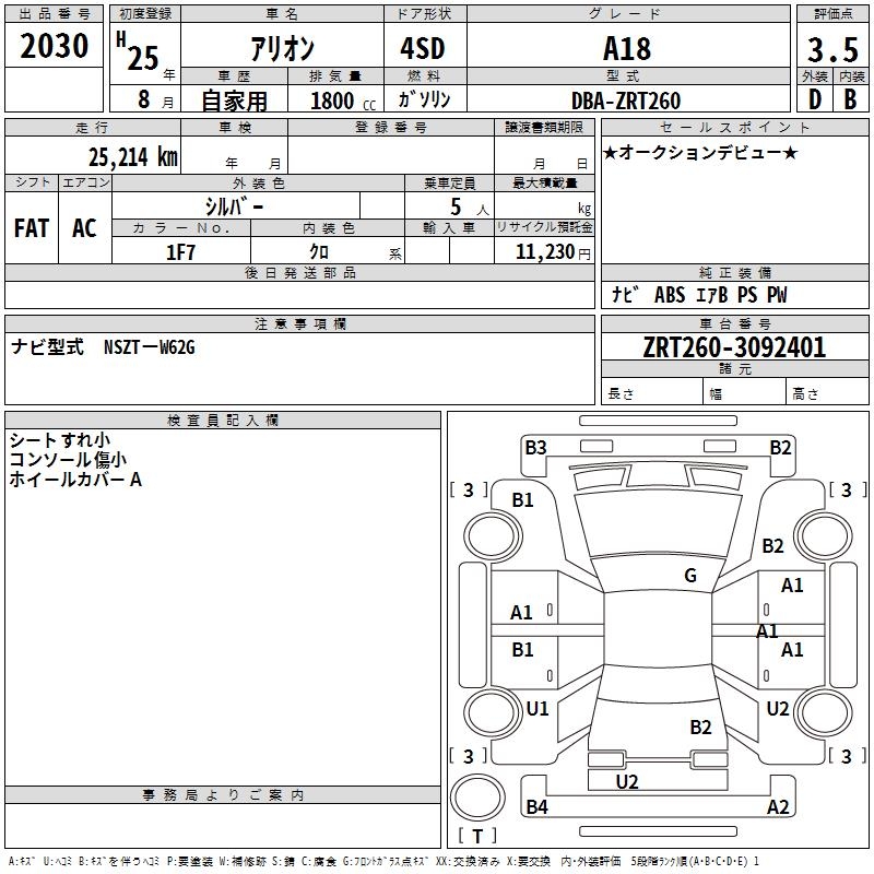 TOYOTA ALLION - лот 2030