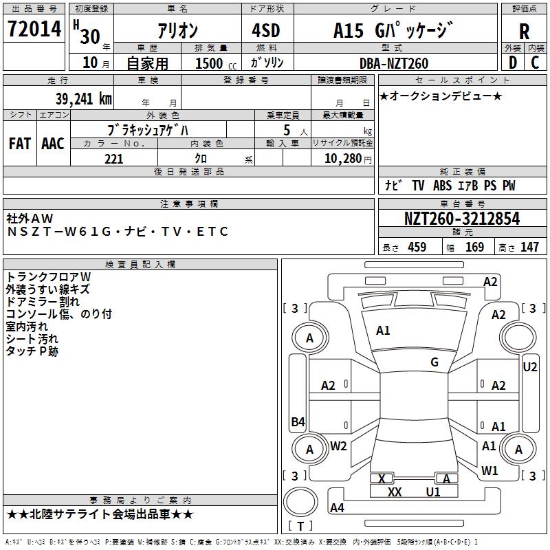 TOYOTA ALLION - лот 72014