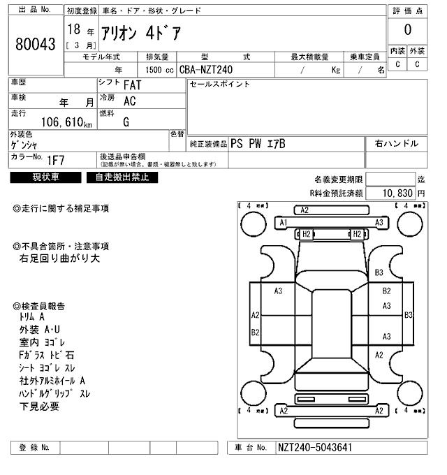 TOYOTA ALLION - лот 80043