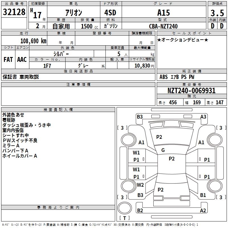 TOYOTA ALLION - лот 32128