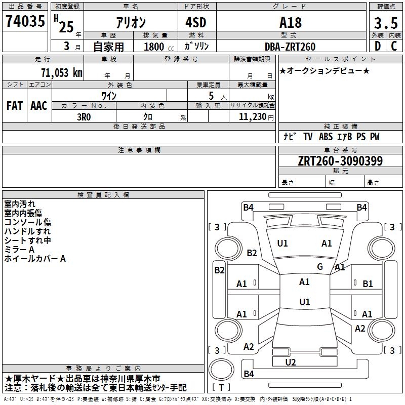 TOYOTA ALLION - лот 74035