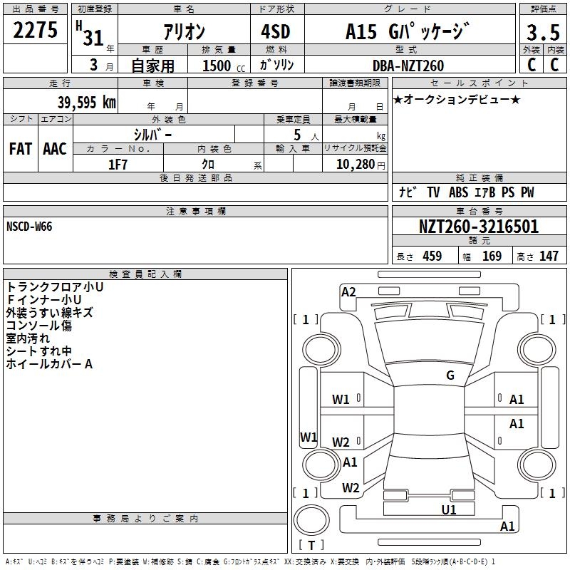 TOYOTA ALLION - лот 2275