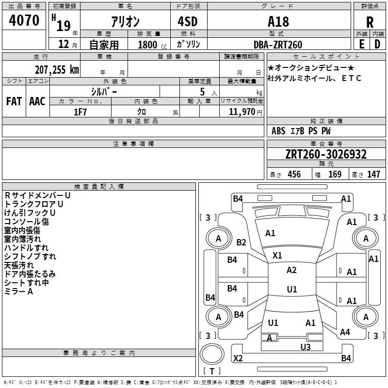 TOYOTA ALLION - лот 4070
