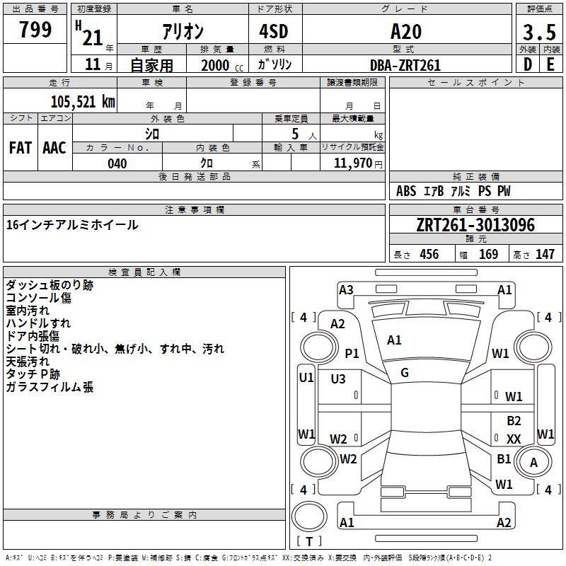 TOYOTA ALLION - лот 799
