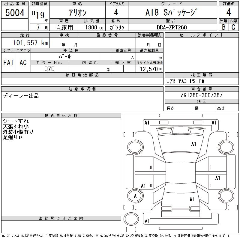 TOYOTA ALLION - лот 5004