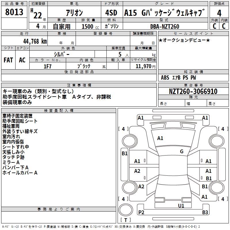 TOYOTA ALLION - лот 8013
