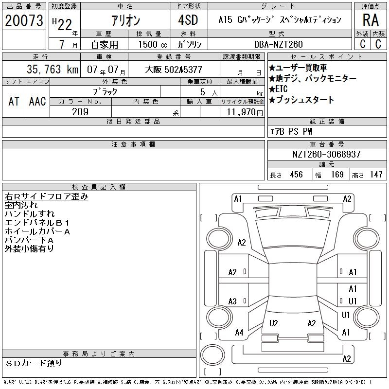 TOYOTA ALLION - лот 20073