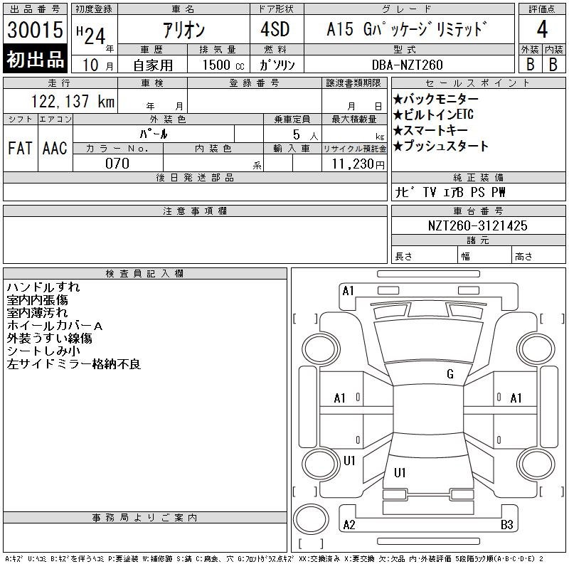 TOYOTA ALLION - лот 30015