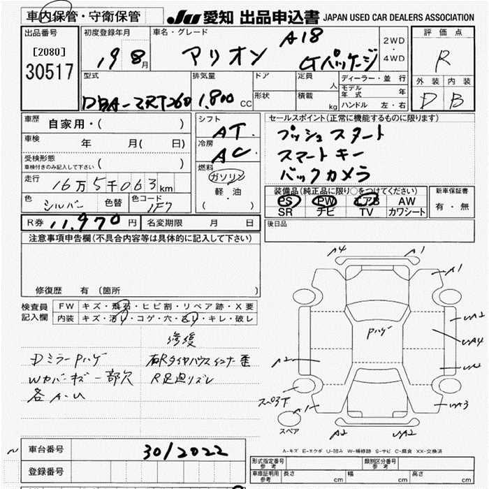 TOYOTA ALLION - лот 30517