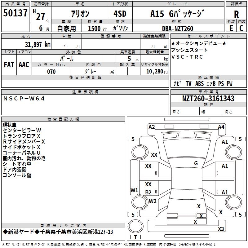 TOYOTA ALLION - лот 50137
