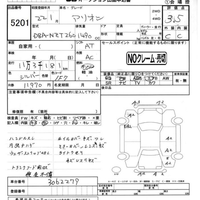 TOYOTA ALLION - лот 5201