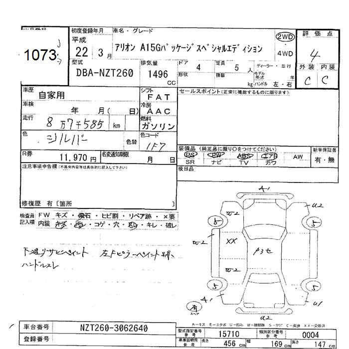 TOYOTA ALLION - лот 1073
