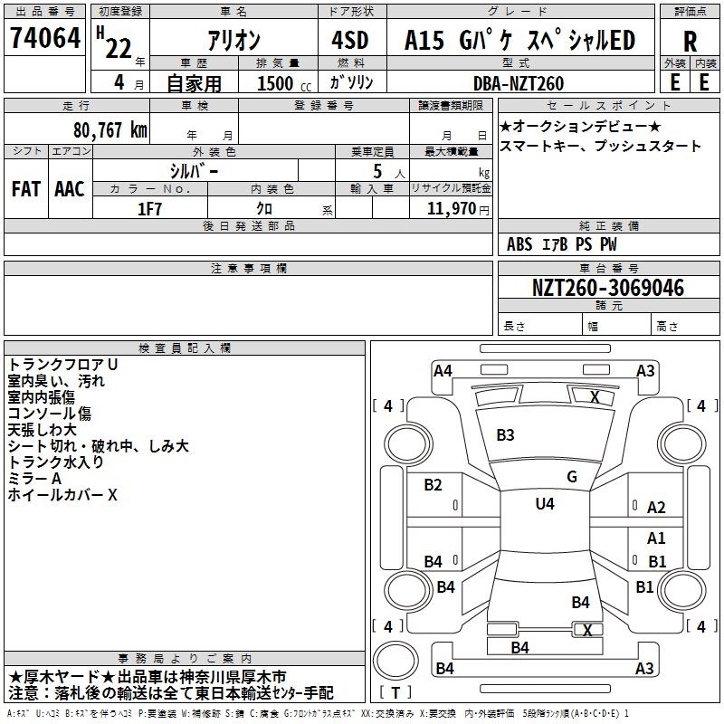 TOYOTA ALLION - лот 74064