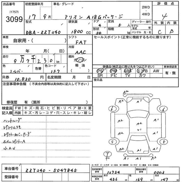TOYOTA ALLION - лот 3099