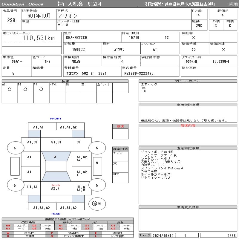TOYOTA ALLION - лот 298