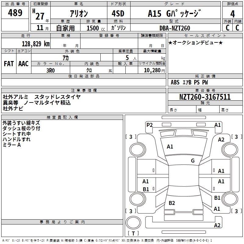 TOYOTA ALLION - лот 489