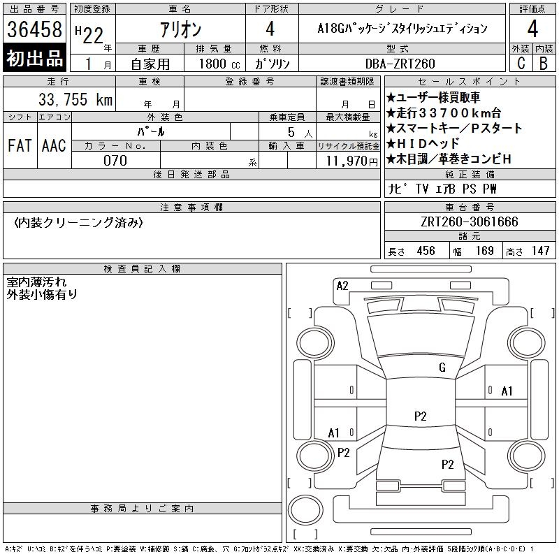 TOYOTA ALLION - лот 36458
