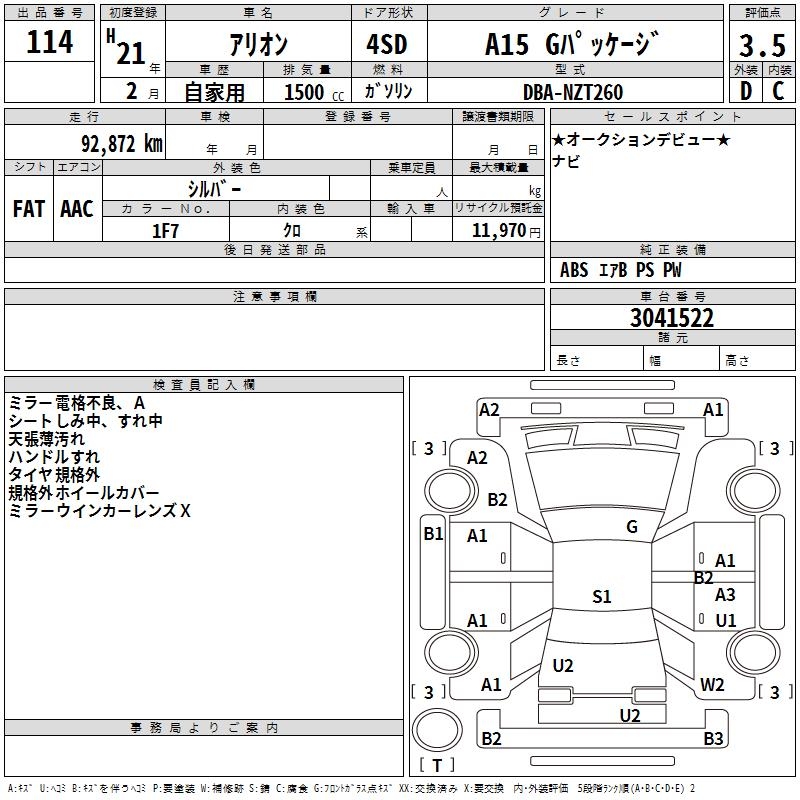 TOYOTA ALLION - лот 114