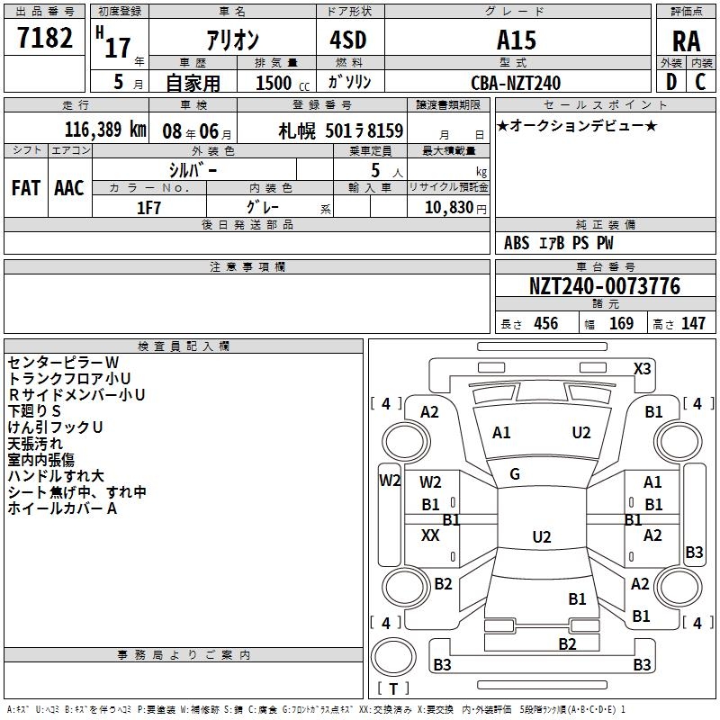 TOYOTA ALLION - лот 7182