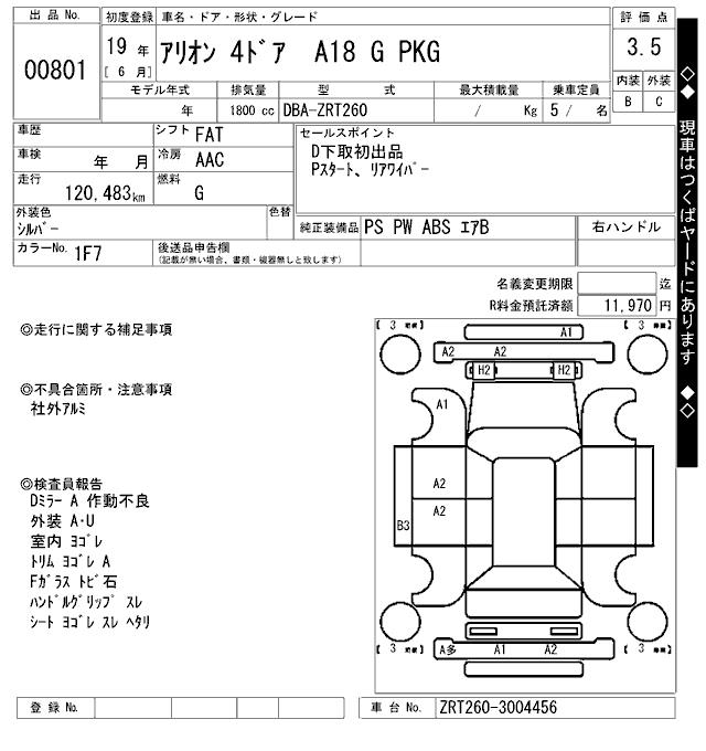 TOYOTA ALLION - лот 801