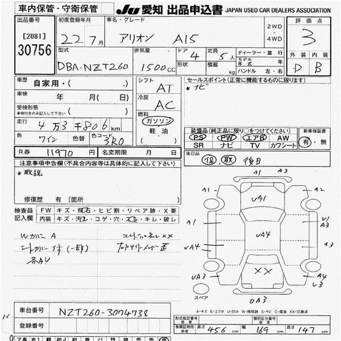 TOYOTA ALLION - лот 30756