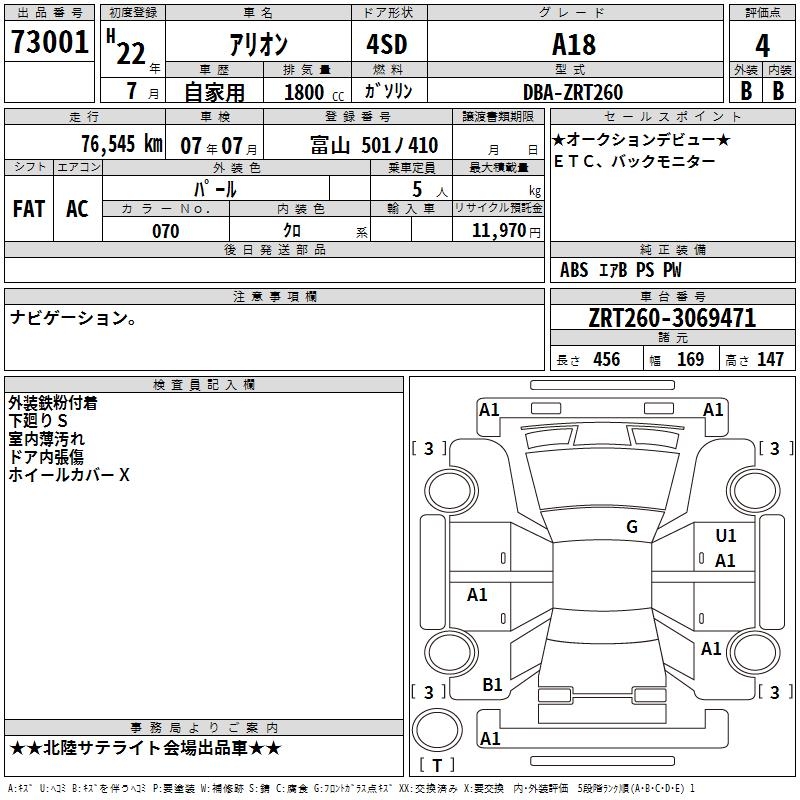 TOYOTA ALLION - лот 73001