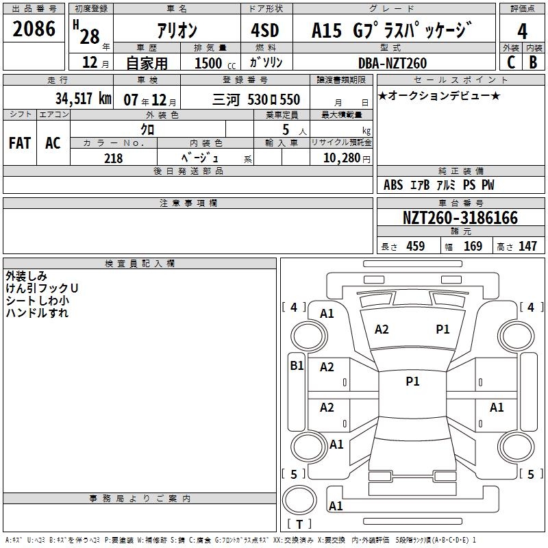 TOYOTA ALLION - лот 2086